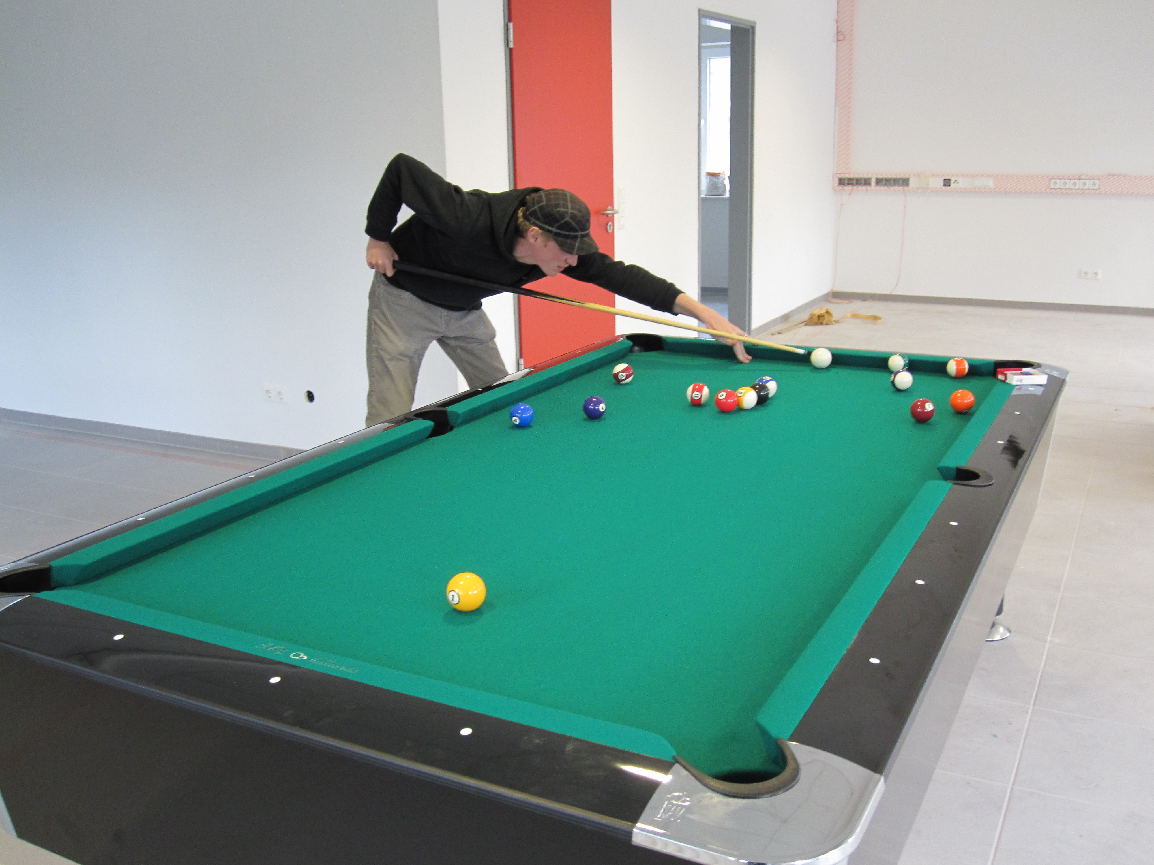 Diese Woche sind der neue Billardtisch und der neue Kicker geliefert und aufgebaut worden! Die Bilder wollen wir euch natürlich nicht vorenthalten. Selbstverständlich haben Jonas und ich schon einen Qualitätscheck durchgeführt. Leider hat Jonas sowohl beim Kickern als auch beim Billard gewonnen!!! Arggg…! Wenn ihr beim Streichen und Gestalten der Jugendräume in der Woche vom 26.10 bis zum 30.10.2009 mithelft, könnt ihr in den Pausen natürlich auch schon Mal eine Partie spielen!