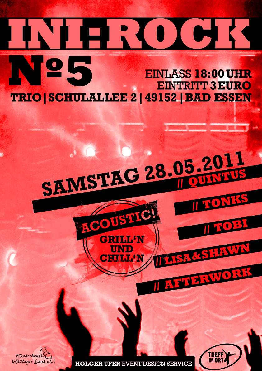 INI:Rock No. 5 wird im Übrigen am 28. Mai unter dem Motto „Grill’n und Chill’n“ und mit entsprechenden Akustik-Auftritten auf dem Außengelände stattfinden.