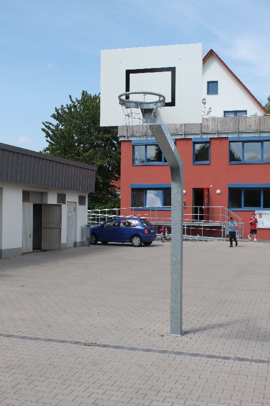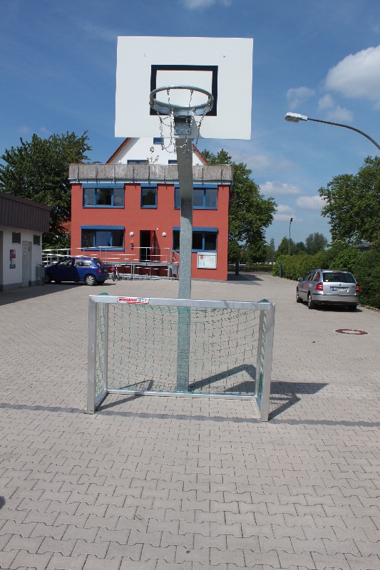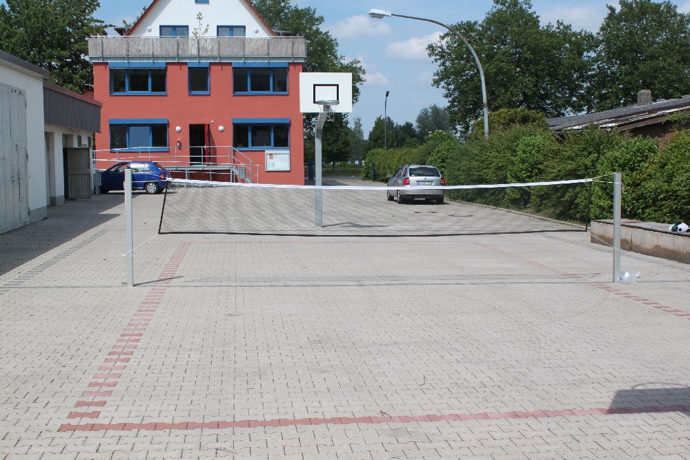 ab heute bietet der Außenbereich des TriO eine weitere Attraktion. Auf dem Spielfeld im hinteren Bereich des Innenhofes kann ab sofort auch Badminton gespielt werden. Jetzt können drei verschiedene Sportarten variiert werden. Neben dem fest installierten Basketballkörben, können entweder Soccertore oder ein Badmintonnetz im Boden verankert werden. Die Spielfelder sind sogar durch farblich unterschiedliche Steine mit Außen- und Mittellinien versehen. Die Maße der Spielfelder passen nicht hundertprozentig mit den Originalmaßen unter Wettkampfbedingungen überein, aber zum einfach mal sportlich aktiv werden, reicht es auf alle Fälle.