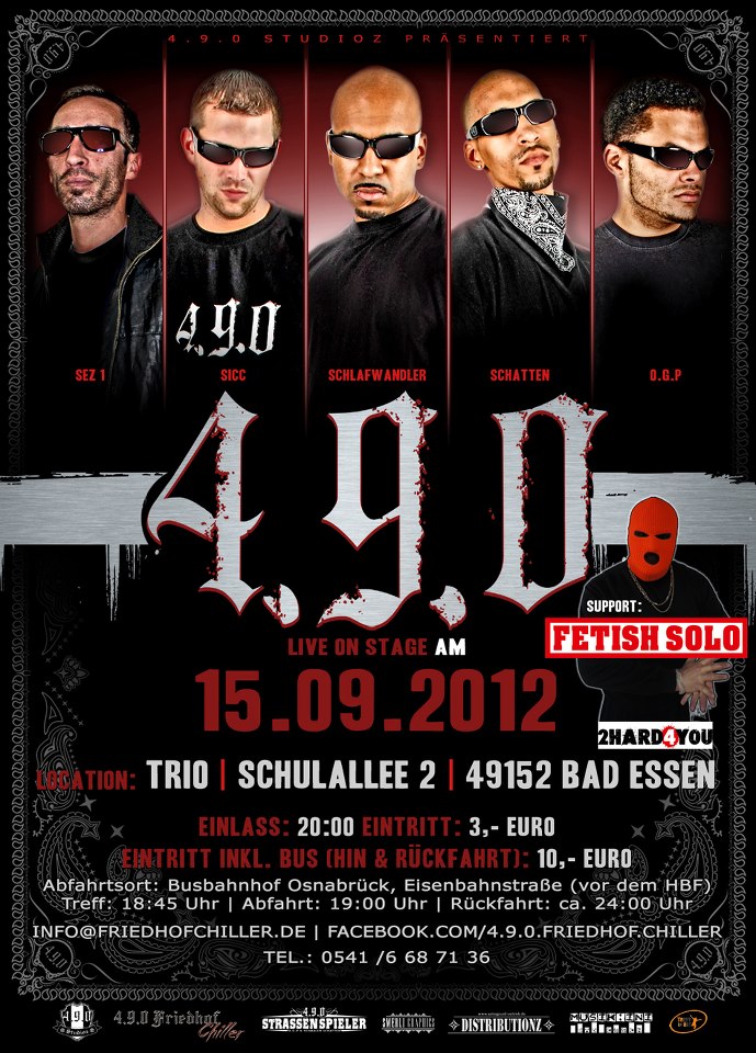 4.9.0 Live im Trio, Bad Essen – Support: Fetish Solo Eintritt: 3,- Euro Hin & Rückfahrt mit Shuttlebus von Osnabrück, HBF bis Bad Essen, Trio inkl. Eintritt: 10,- Euro