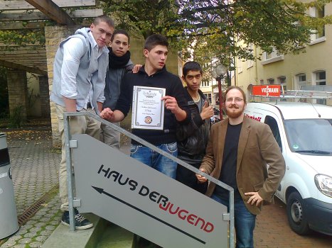 Die Preisverleihung fand im Haus der Jugend in Osnabrück statt. Die Aufregung unter den Jugendlichen war beträchtlich, da erst hier bekanntgegeben wurde, wer denn nun gewonnen hat. Umso größer war die Freude, dass der mit 300 € dotierte Preis an die Jugendgruppe aus Bad Essen ging.