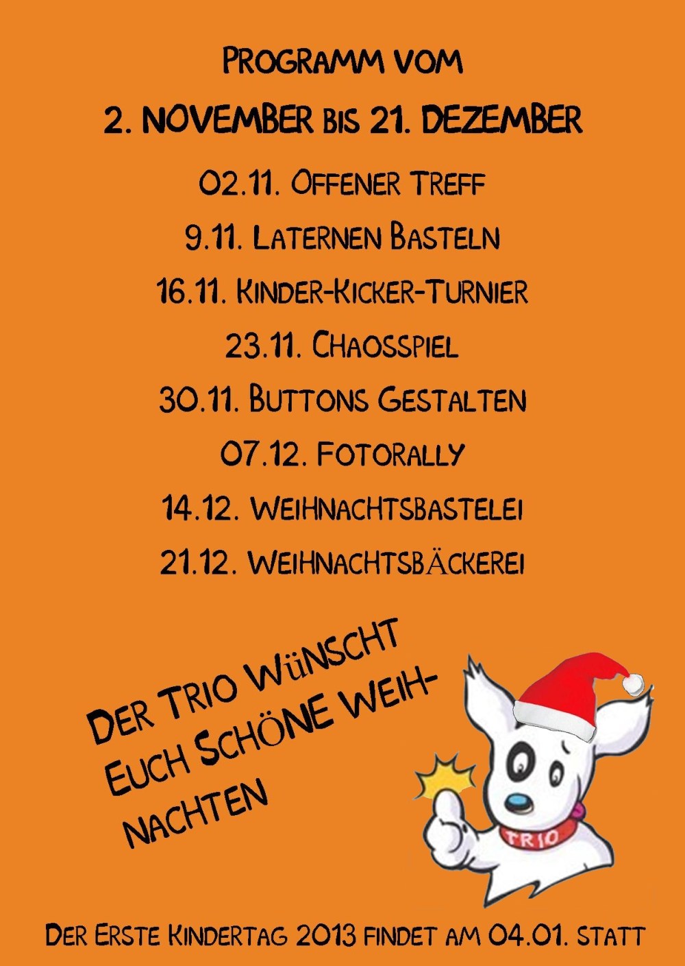 Kindertagsprogramm vom 02.11.2012 bis 21.12.2012