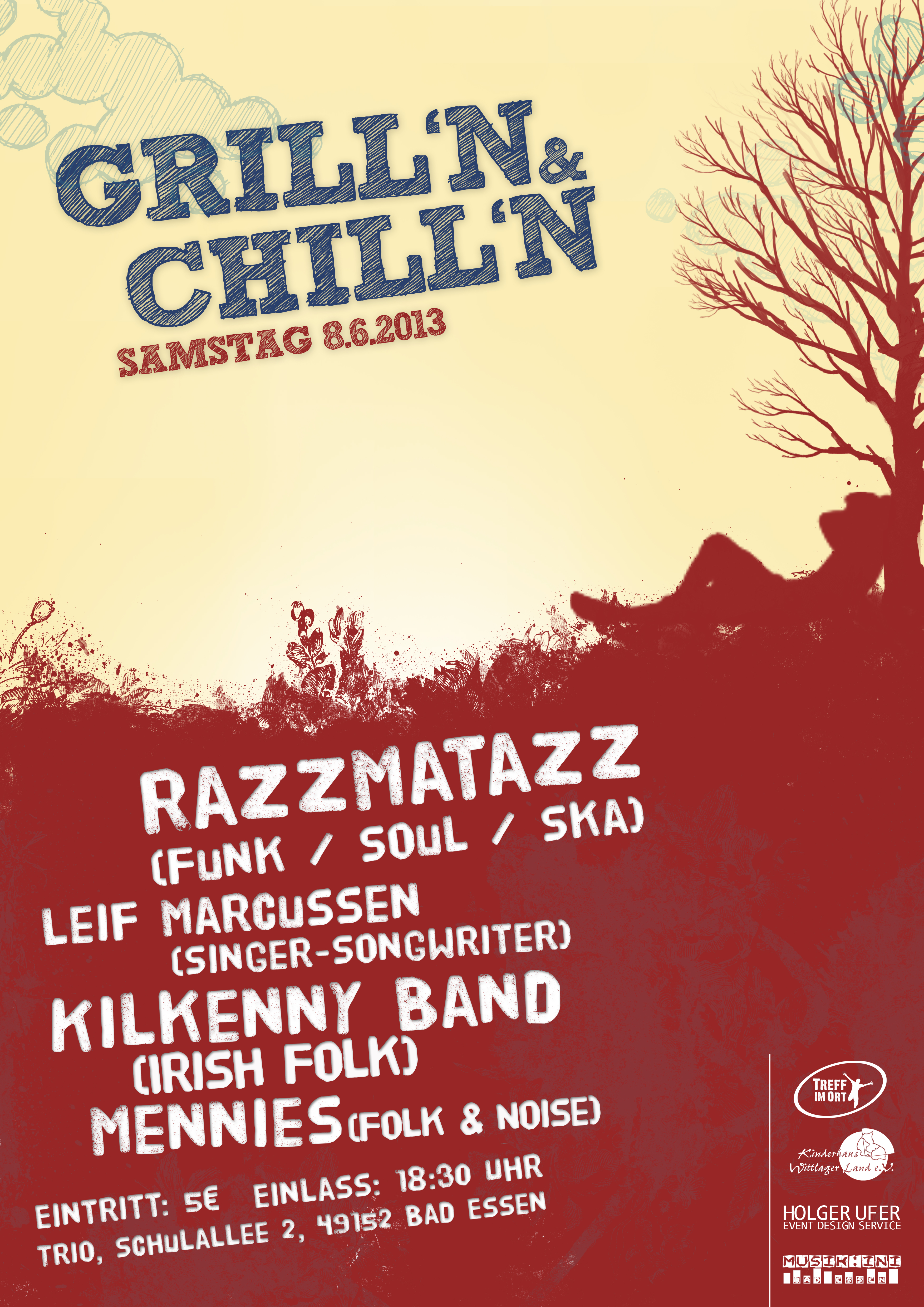 Am Samstag, den 08. Juni, veranstaltet die „Musikinitiative Bad Essen“ ab 18:30 Uhr das Open-Air-Konzert „Grill’n und Chill’n“. Vier Künstler unterschiedlicher Musikrichtungen werden dann im Innenhof des Jugendtreff „TriO“ für eine ganz besondere Stimmung sorgen.