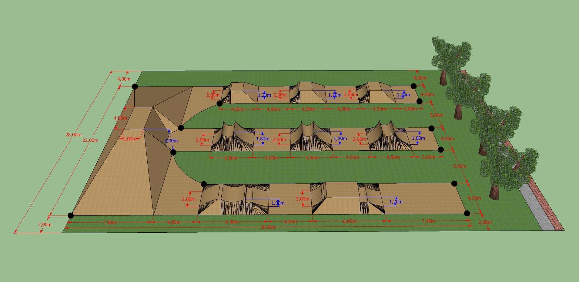 Der Bau der Dirtbahn an der Schulallee, direkt neben der Skateanlage verzögert sich noch etwas. Aber aufgeschoben ist nicht aufgehoben. Die Dirtbahn wird auf jeden Fall errichtet, Allerdings wird mit den Bauarbeiten voraussichtlich erst im Dezember begonnen. Sobald die Spundwandarbeiten an der Marina ageschlossen sind, kann von dort wieder Boden ausgehoben werden, der uns dann als Grundlage für die Dirtbahn dient. Für allen interessierten hier mal die Pläne der Dirtbahn.