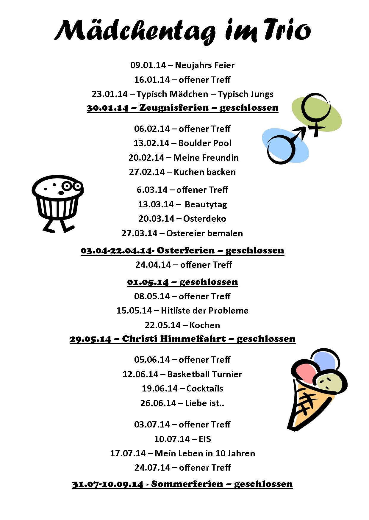 Veranstaltungen Mädchentagsprogramm Verfasst von Jugendtreffleiter am 14. Januar 2014 Hallo Mädchen, hier ist euer neues Programm für den Mädchentag im TriO. Wir freuen uns auf euren Besuch! Weiterleiten an: Klick, um auf Facebook zu teilen (Wird in neuem Fenster geöffnet) Facebook Klicke, um auf X zu teilen (Wird in neuem Fenster geöffnet) X Zum Teilen auf MySpace klicken (Wird in neuem Fenster geöffnet) MySpace Klicken zum Ausdrucken (Wird in neuem Fenster geöffnet) Drucken Klicken, um einem Freund einen Link per E-Mail zu senden (Wird in neuem Fenster geöffnet) E-Mail Gefällt mir Wird geladen … Ähnliche Beiträge
