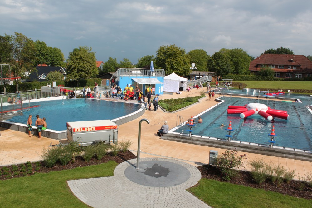 Mit viel Fleiß und Motivation wurde am 13.August von allen Helfern und Helferinnen das Freibadfest mit den dazugehörigen Aktionen aufgebaut. Die einzige die nicht so motiviert war, war die Sonne. Auf die musste nämlich zunächst gewartet werden. Zum Glück haben sich aber nicht viele von den grauen Wolken abschrecken lassen und so haben Erwachsene & Jugendliche, sowie Familien mit Kindern den Weg ins Solebad Bad Essen gefunden.