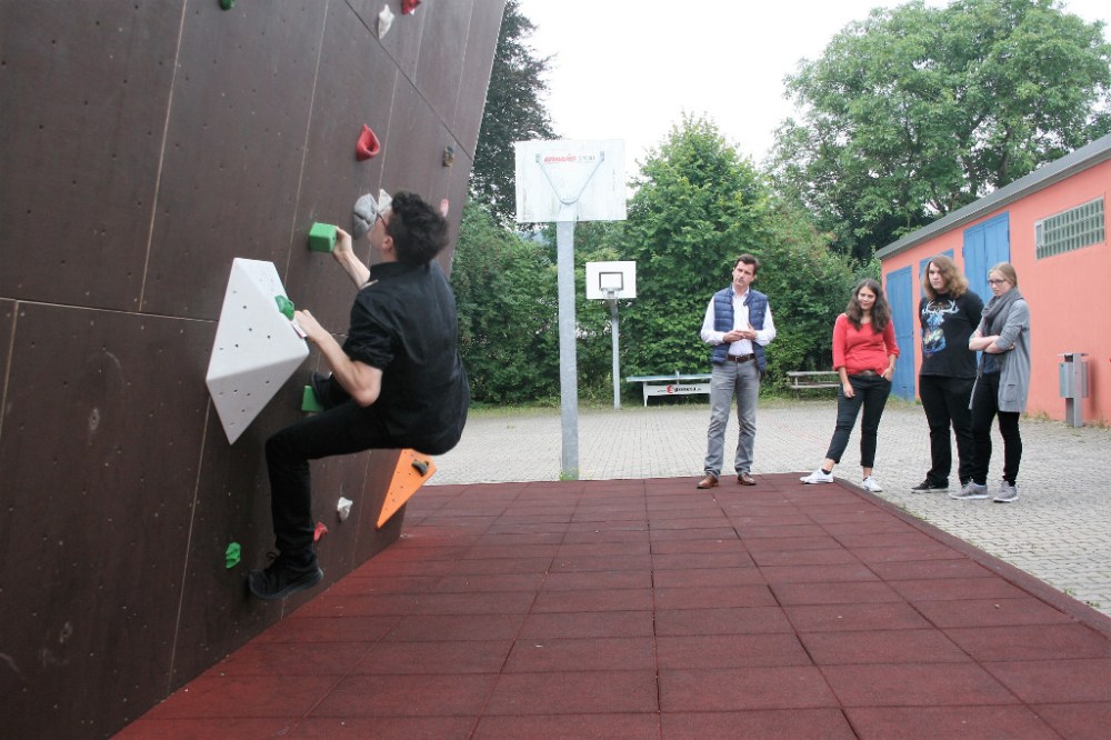 Neben den Fragen gab es für unseren Gast aber auch etwas zu sehen, so wurde er von unseren Jugendlichen Interviewern durch die Räume des TriOs und den anliegenden Boulder Pool geführt und es wurden ihm Initiativen und Projekte der Jugendpflege vorgestellt.