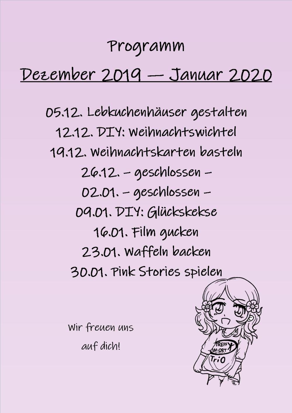 Veranstaltungen Neues Mädchentagsprogramm Verfasst von Jugendpflege Bad Essen am 28. November 201928. November 2019 Hallo liebe Mädchen, hier findet ihr das neue Mädchentagsprogramm für Dezember und Januar! Heute haben wir uns schon in den Advent eingestimmt und haben uns einen Adventskranz gebastelt. Kommt gern vorbei! Weiterleiten an: Klick, um auf Facebook zu teilen (Wird in neuem Fenster geöffnet) Facebook Klicke, um auf X zu teilen (Wird in neuem Fenster geöffnet) X Zum Teilen auf MySpace klicken (Wird in neuem Fenster geöffnet) MySpace Klicken zum Ausdrucken (Wird in neuem Fenster geöffnet) Drucken Klicken, um einem Freund einen Link per E-Mail zu senden (Wird in neuem Fenster geöffnet) E-Mail Gefällt mir Wird geladen … Ähnliche Beiträge