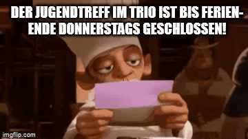 Während der Ferien ist der Jugendtreff im TriO am Donnerstag geschlossen. (Für alle „mobilen“ Besucher: Der Jugendtreff in Bohmte hat geöffnet!)