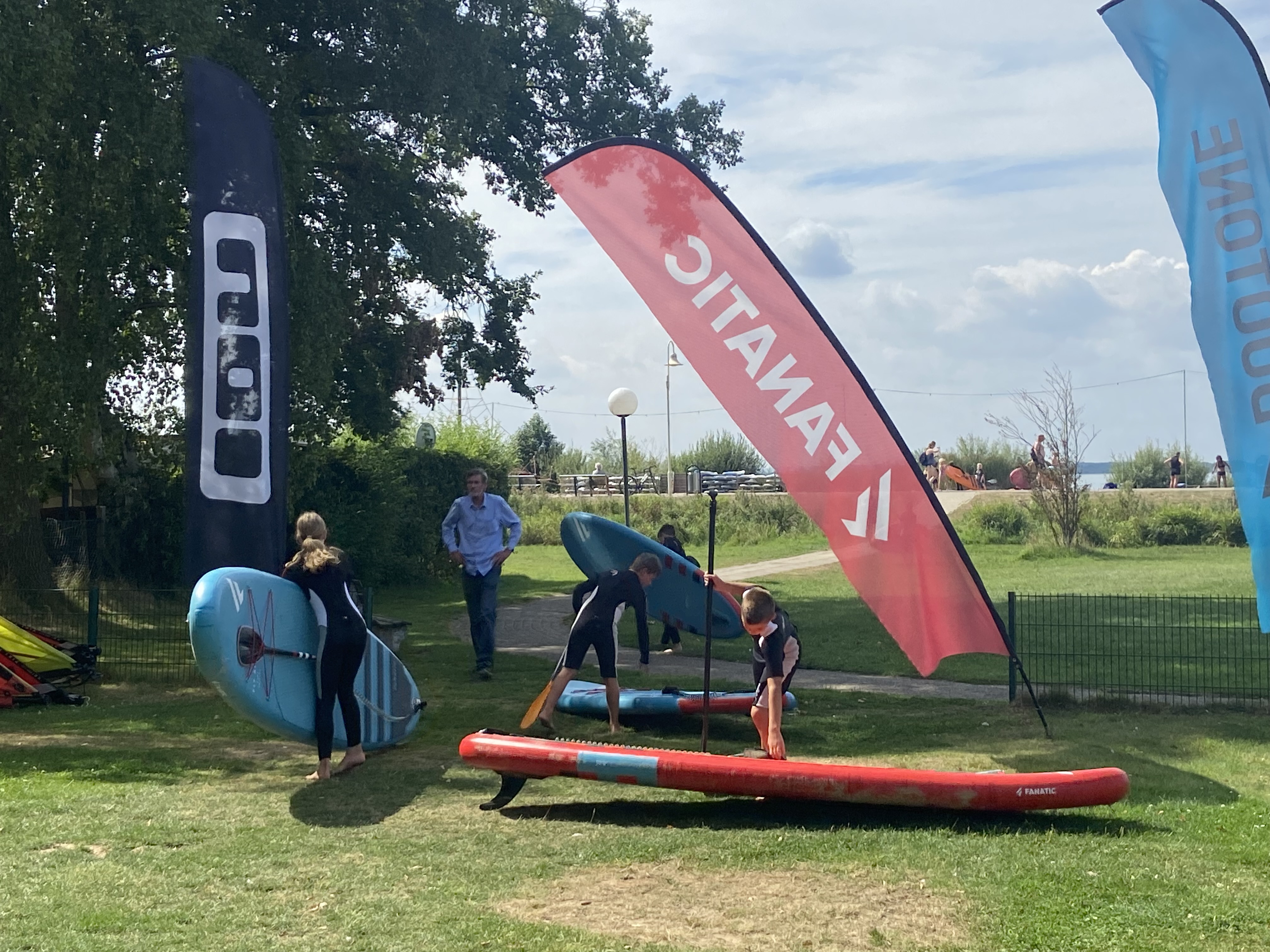 Mit 24 Teilnehmer*innen starteten wir in eine spaßige und wasserfreudige Stand up Paddel Ferienspaßaktion. Bei den warmen Temperaturen freuten sich Einige ins kühlende Nass zu springen oder beim ausprobieren Hinein zu fallen. Fest steht, alle hatten viel Spaß und wurden von den beiden Lehrern angeleitet. Viele waren schon echte Stand up Paddel Profis, Andere brauchten etwas länger, um in die Bewegungen rein zu kommen. Hier halfen sich die Kinder oft untereinander.