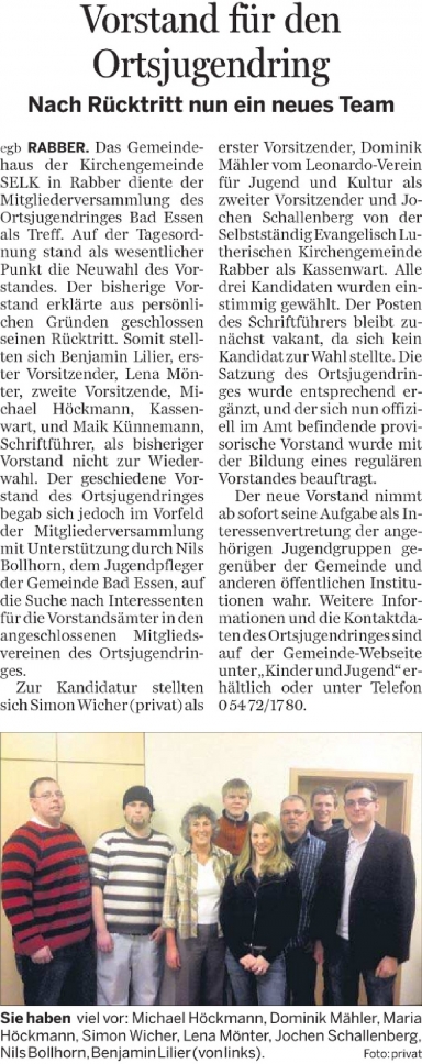 10.12.2009 – Ortsjugendring neuer Vorstand
