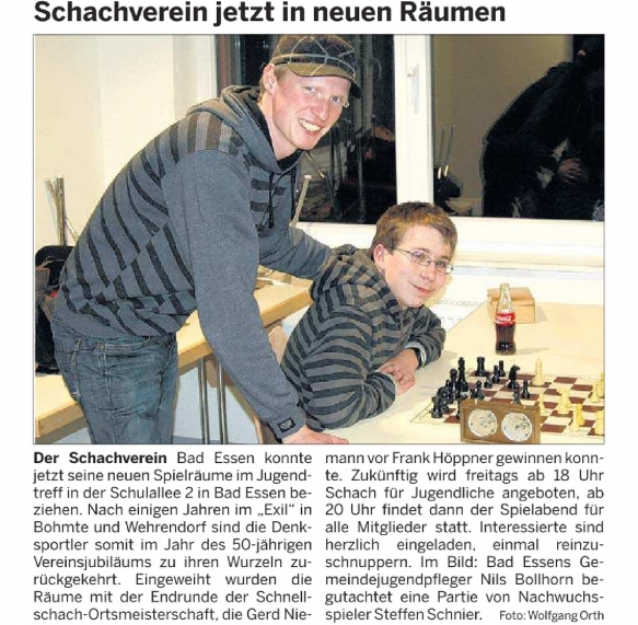 23.01.2010 – Schachverein jetzt in neuen Räumen