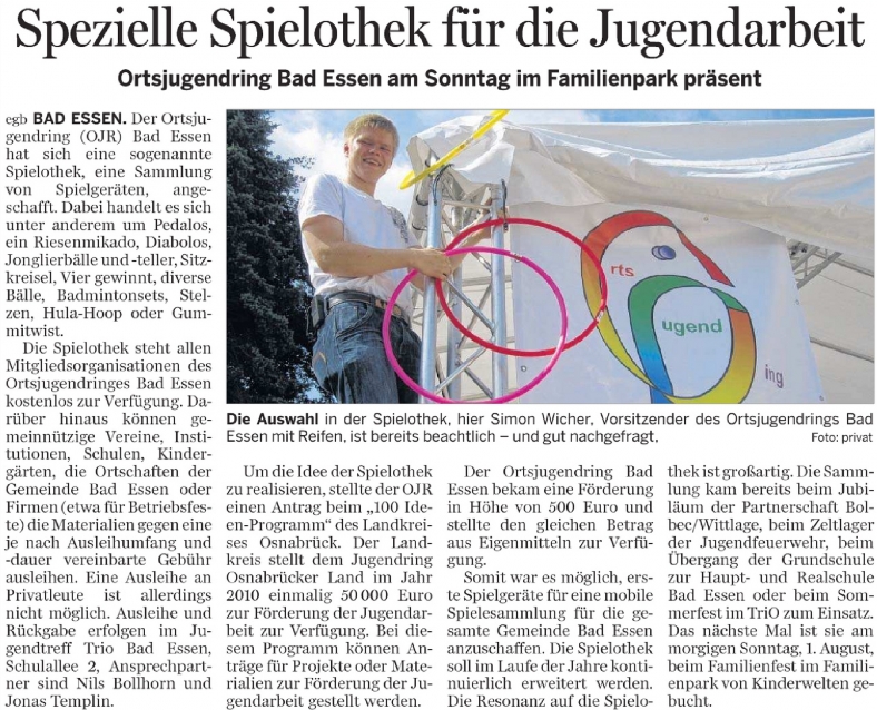31.07.2010 – Ortsjugendring Spezielle Spielothek für die Jugendarbeit