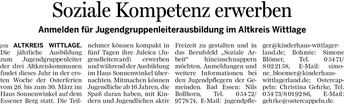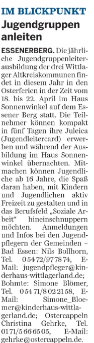 28.11.2014 – Neue Jugendpflegerin für Bad Essen