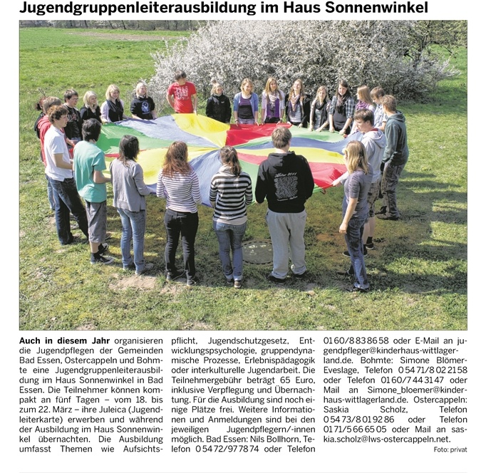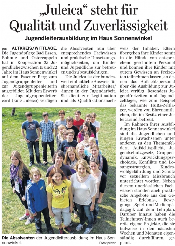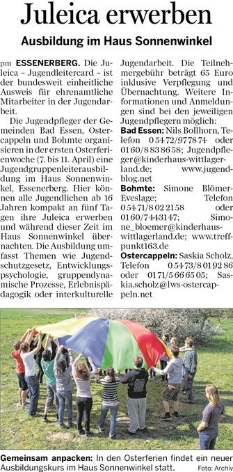 31.12.2013 – Juleica erwerben – Ausbildung 2014 im Haus Sonnenwinkel