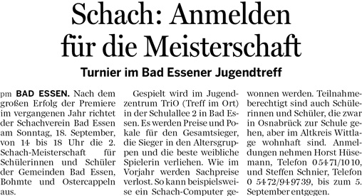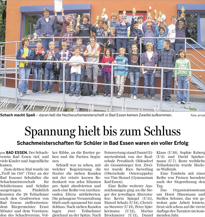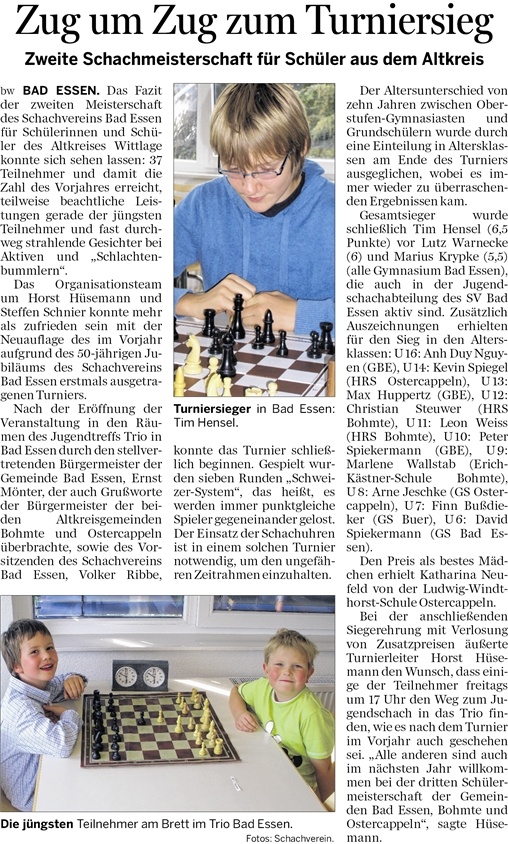 22.08.2011 – Jugendarbeit des Schachvereins zeigt erfolge