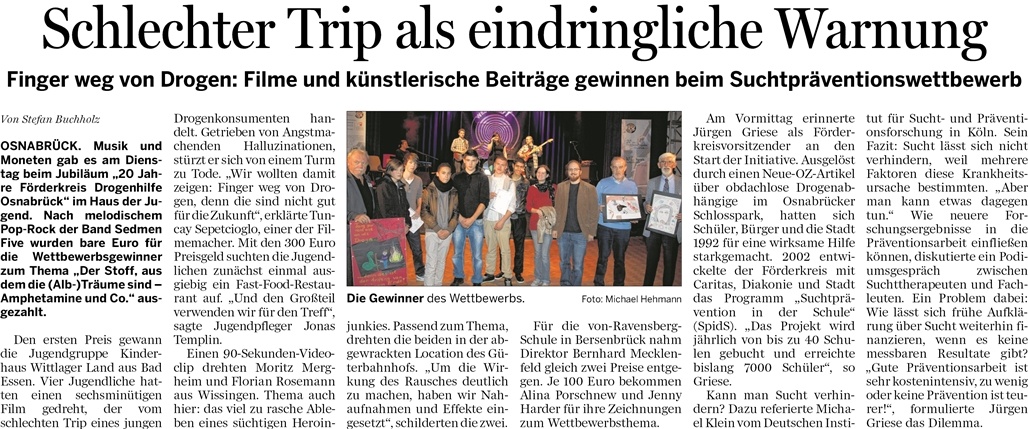 10.10.2012 – Jugendliche gewinnen 1. Platz mit Filmbeitrag zum Thema Drogen