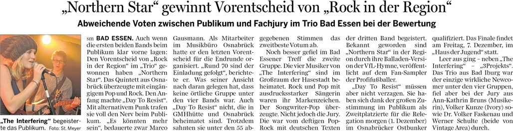 30.11.2012 – Northern Star gewinnt Vorentscheid von Rock in der Region im TriO