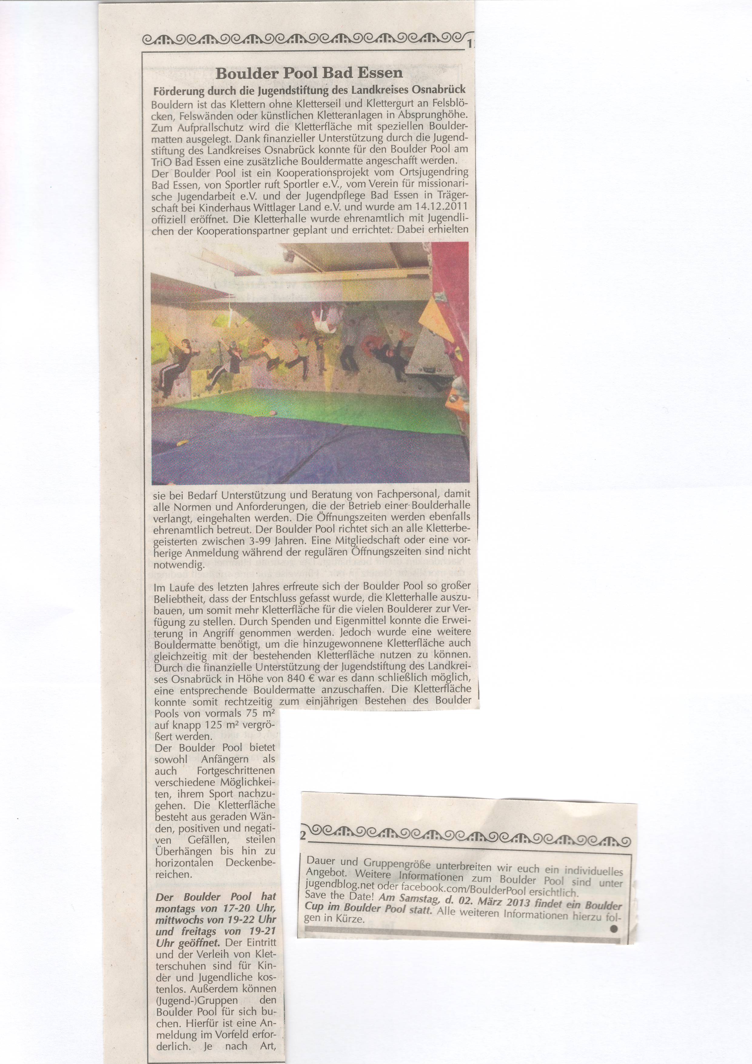 24.01.2013 – Boulder Pool – Jugendstiftung Landkreis Osnabrück