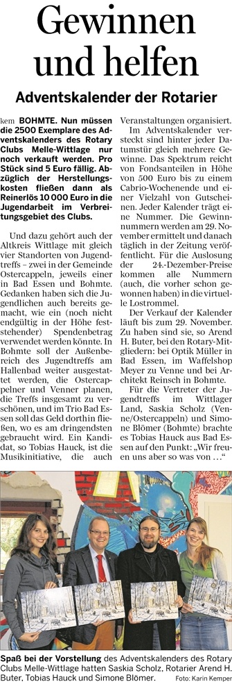 21.10.2013 – Gewinnen und helfen – Adventskalender der Rotarier