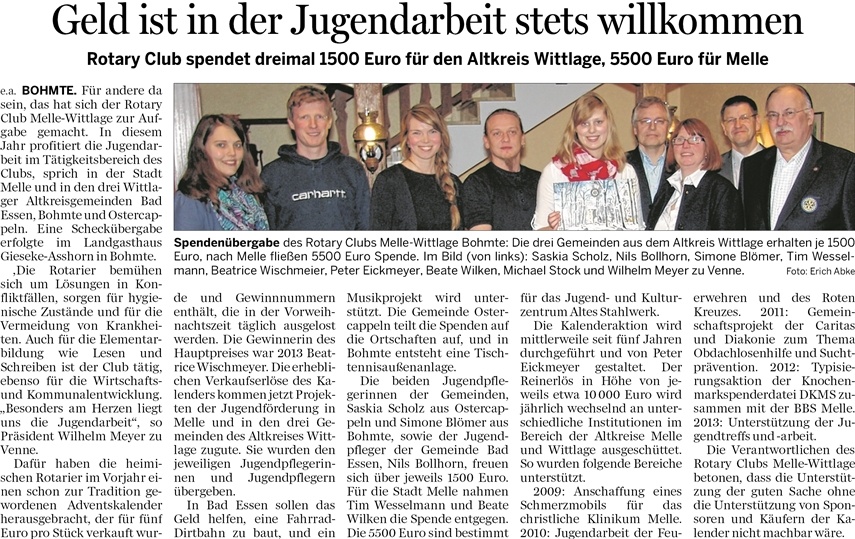 14.03.2014 – Rotary Club spendet für die Jugendarbeit