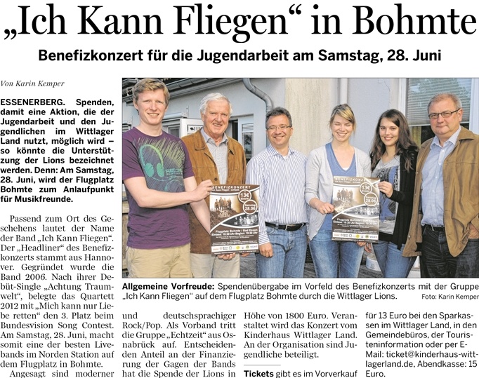 17.06.2014 – Benefizkonzert für die Jugendarbeit am 28. Juni am Flugplatz Bohmte