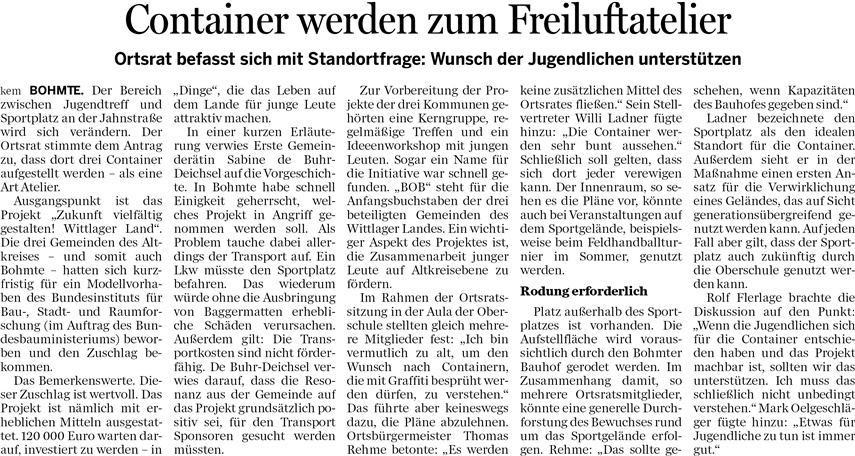 Hier einige Ausschnitte aus der Presse – chronologisch sortiert. Die Aktuellen stehen oben. Die älteren, aber deswegen nicht „langweiligeren“ Artikel, folgen