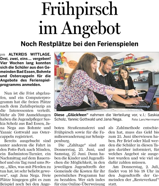18.06.2015 – Die Ferienspiele sind ausgelost