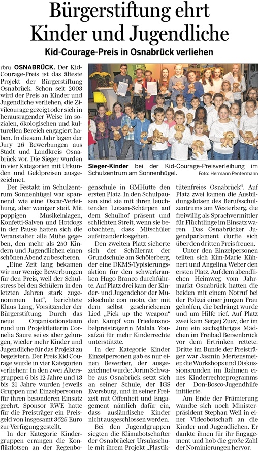 10.11.2015 – Jugendlicher aus Bad Essen wird beim Kid-Courage Preis geehrt